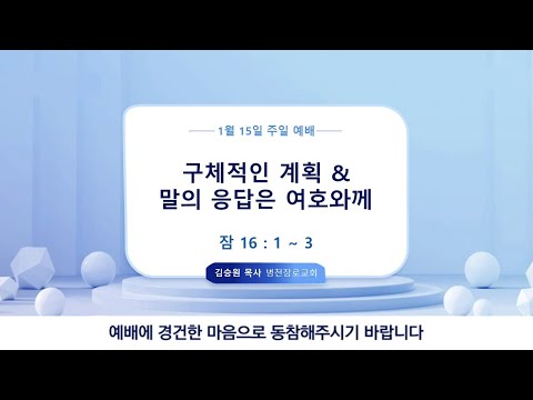 2023년 1월 15일 주일예배 - 구체적인 계획 & 말의 응답은 여호와께 (잠 16 : 1~3) : 김승원 목사