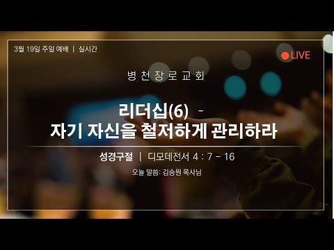 2023년 3월 19일 주일예배 - 리더십(6) : 자기자신을 철저하게 관리하라 (딤전 4 : 7~16) : 김승원 목사