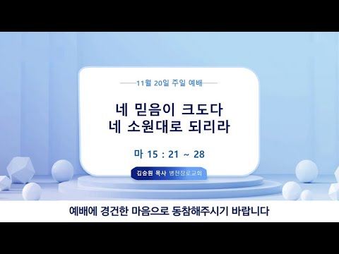 2022년 11월 20일 주일예배 - 네 믿음이 크도다 네 소원대로 되리라 (마 15:21~28) : 김승원 목사