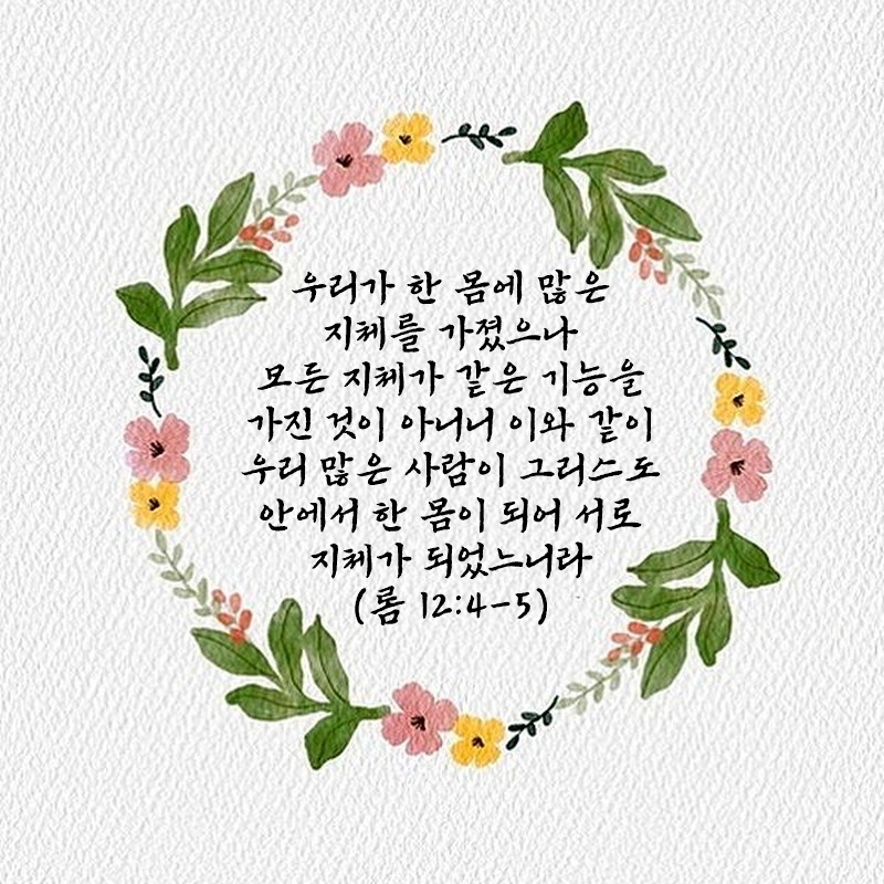 로마서 12장 4절~5절 관리자 로마서 0 2597 2024.12.07 08:39 Author 0 1 Lv.71 관리자 최고관리자 311,500 (0%) 너희 안에 이 마음을 품으라 곧 그리스도 예수의 마음이니(빌립보서 2:5) Let this mind be in you, which was also in Christ Jesus(Philippians 2:5)