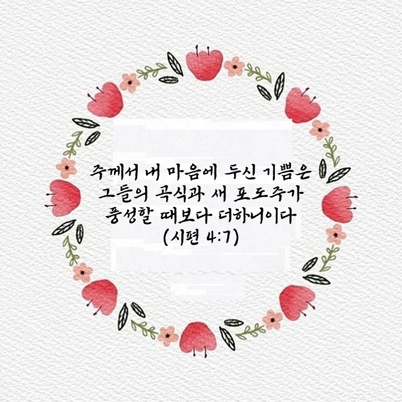 시편 4편 7절 관리자 시편 0 3055 2024.12.02 06:07 Author 0 1 Lv.71 관리자 최고관리자 311,500 (0%) 너희 안에 이 마음을 품으라 곧 그리스도 예수의 마음이니(빌립보서 2:5) Let this mind be in you, which was also in Christ Jesus(Philippians 2:5)