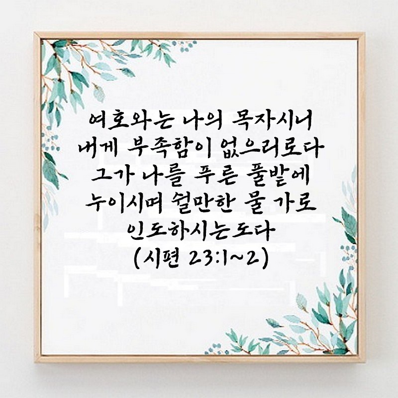시편 23편 1절~2절 관리자 시편 0 2950 2024.12.02 06:11 Author 0 1 Lv.71 관리자 최고관리자 311,500 (0%) 너희 안에 이 마음을 품으라 곧 그리스도 예수의 마음이니(빌립보서 2:5) Let this mind be in you, which was also in Christ Jesus(Philippians 2:5)