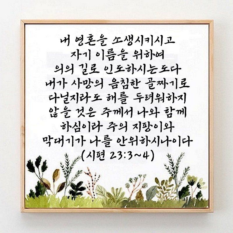 시편 23편 3절~4절 관리자 시편 0 3008 2024.12.02 06:12 Author 0 1 Lv.71 관리자 최고관리자 311,500 (0%) 너희 안에 이 마음을 품으라 곧 그리스도 예수의 마음이니(빌립보서 2:5) Let this mind be in you, which was also in Christ Jesus(Philippians 2:5)