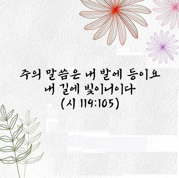 시편 119편 105절 관리자 시편 0 1307 06.29 04:50 Author 0 1 Lv.71 관리자 최고관리자 311,500 (0%) 너희 안에 이 마음을 품으라 곧 그리스도 예수의 마음이니(빌립보서 2:5) Let this mind be in you, which was also in Christ Jesus(Philippians 2:5)