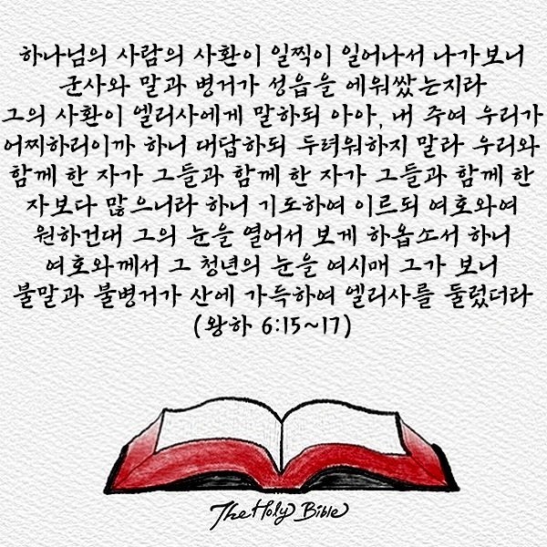 열왕기하 6장 15절~17절 관리자 열왕기하 0 1342 06.29 05:34 Author 0 1 Lv.71 관리자 최고관리자 312,350 (10.6%) 너희 안에 이 마음을 품으라 곧 그리스도 예수의 마음이니(빌립보서 2:5) Let this mind be in you, which was also in Christ Jesus(Philippians 2:5)