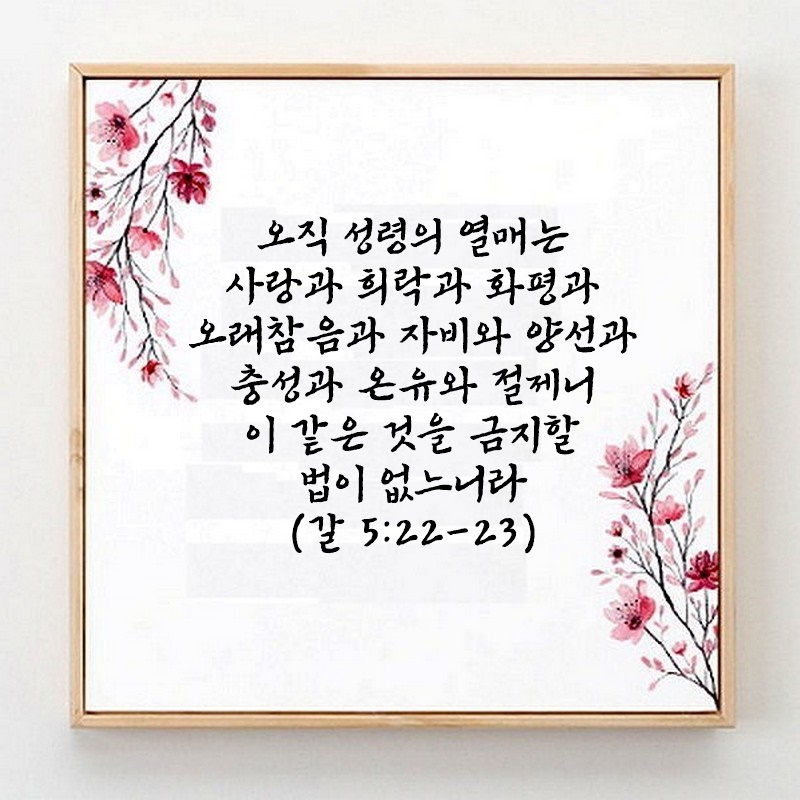 사 - 사랑, 희 - 희락, 화 - 화평, 오 - 오래 참음, 자 - 자비, 양 - 양선, 충 - 충성, 온 - 온유, 절 - 절제