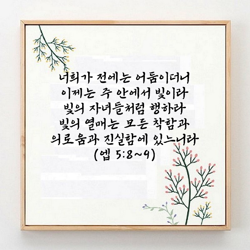 에베소서 5장 8절~9절 관리자 에베소서 0 2352 2024.12.07 16:06 Author 0 1 Lv.71 관리자 최고관리자 312,350 (10.6%) 너희 안에 이 마음을 품으라 곧 그리스도 예수의 마음이니(빌립보서 2:5) Let this mind be in you, which was also in Christ Jesus(Philippians 2:5)