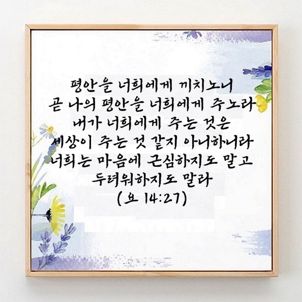 요한복음 14장 27절 관리자 요한복음 0 1170 06.29 06:10 Author 0 1 Lv.71 관리자 최고관리자 311,500 (0%) 너희 안에 이 마음을 품으라 곧 그리스도 예수의 마음이니(빌립보서 2:5) Let this mind be in you, which was also in Christ Jesus(Philippians 2:5)