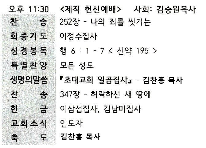 2024년 1월 14일 제직 헌신예배 (주일 저녁) 관리자 0 501 2024.01.16 18:10 2024년 1월 14일 제직 헌신예배 (주일 저녁) Author 1 1 Lv.76 관리자 최고관리자 357,680 (60.9%) 너희 안에 이 마음을 품으라 곧 그리스도 예수의 마음이니(빌립보서 2:5) Let this mind be in you, which was also in Christ Jesus(Philippians 2:5)
