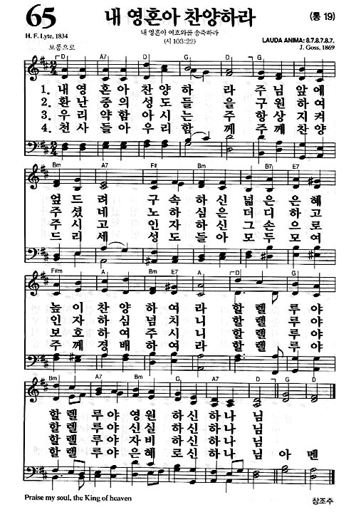 [찬송가 반주] 새찬송가 65장(통19장) 내 영혼아 찬양하라 Praise, My Soul, the King of Heaven