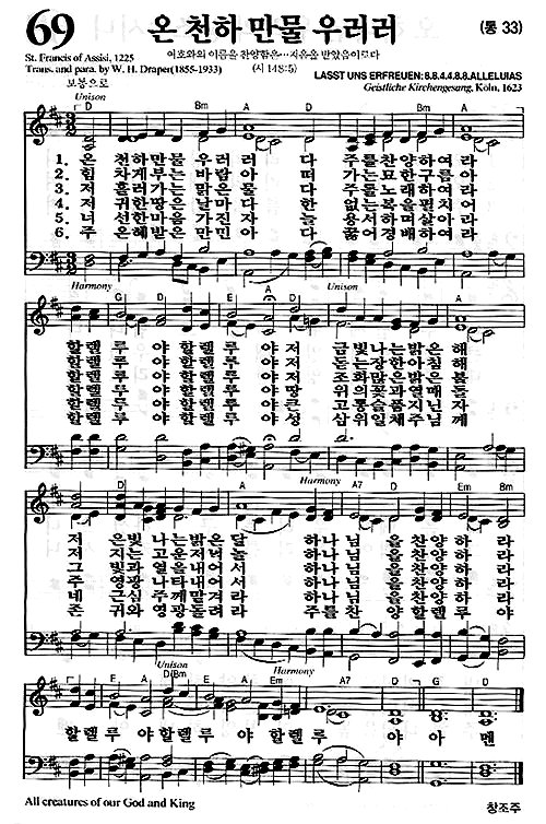 [찬송가 반주] 새찬송가 69장(통33장) 온 천하 만물 우러러 All Creatures of Our God and King