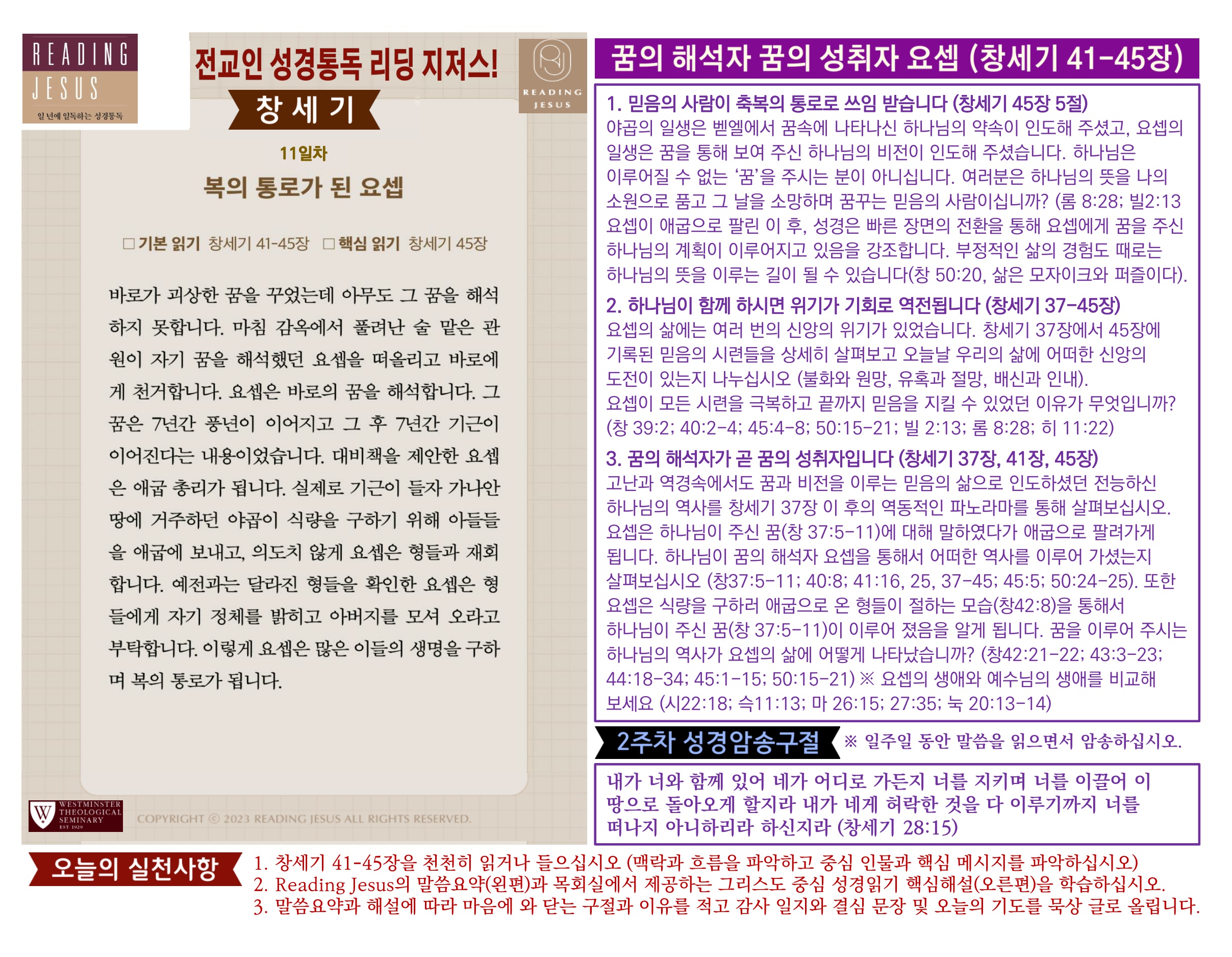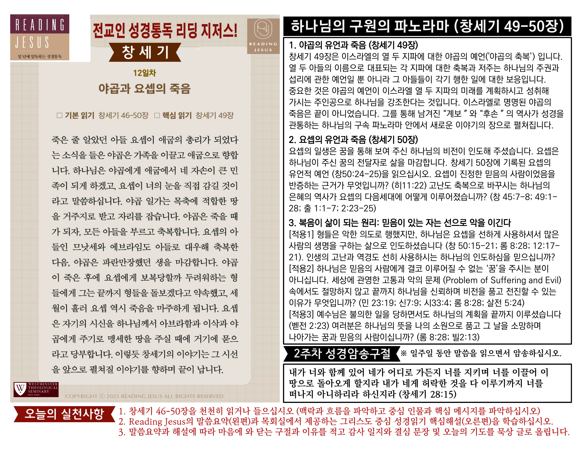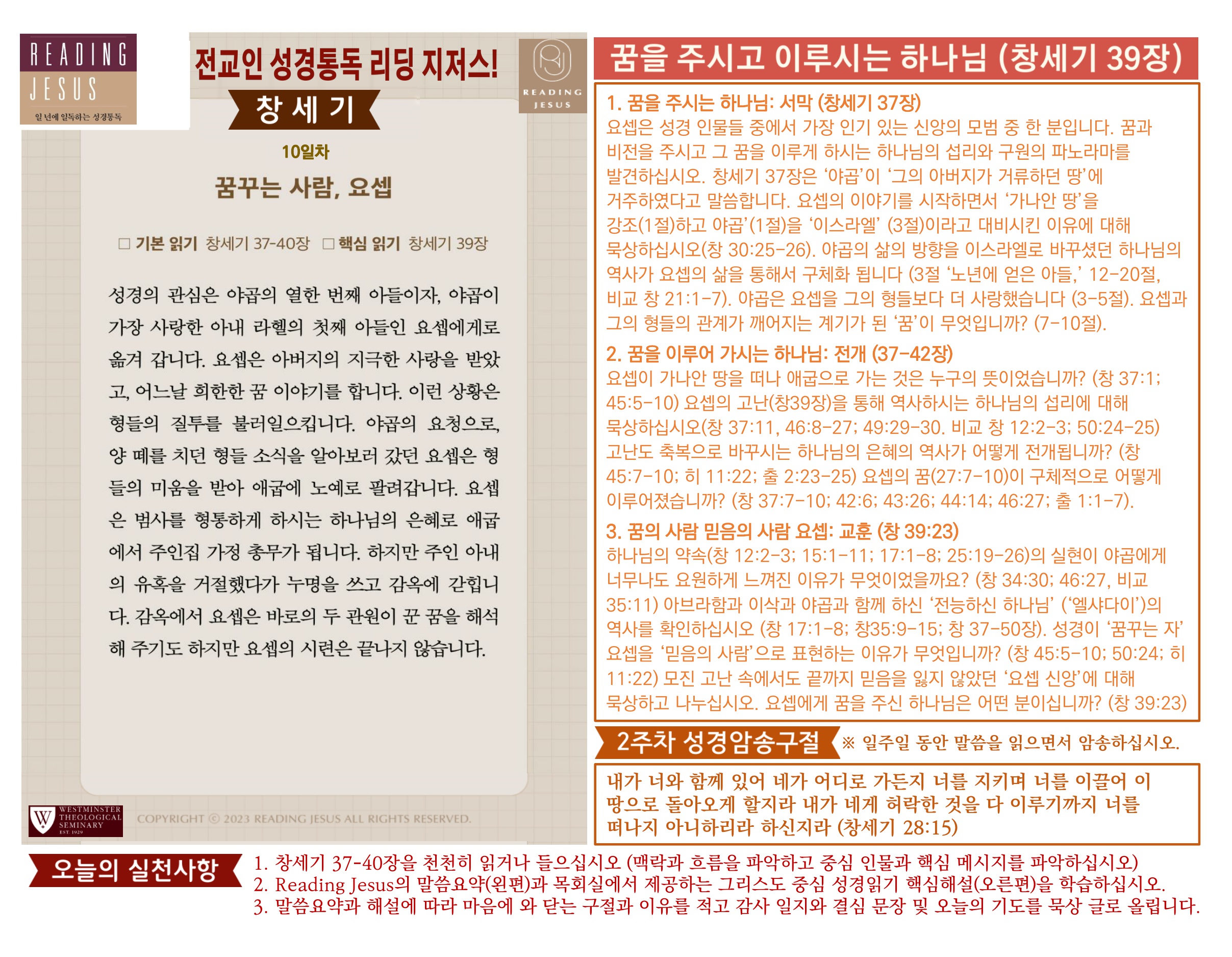그리스도 중심 성경읽기, 리딩지저스 말씀 요약 | 2주차 : 창세기 2 관리자 교재와 해설 0 6 02.22 19:16 Author 1 1 Lv.77 관리자 최고관리자 369,330 (96.8%) 너희 안에 이 마음을 품으라 곧 그리스도 예수의 마음이니(빌립보서 2:5) Let this mind be in you, which was also in Christ Jesus(Philippians 2:5)
