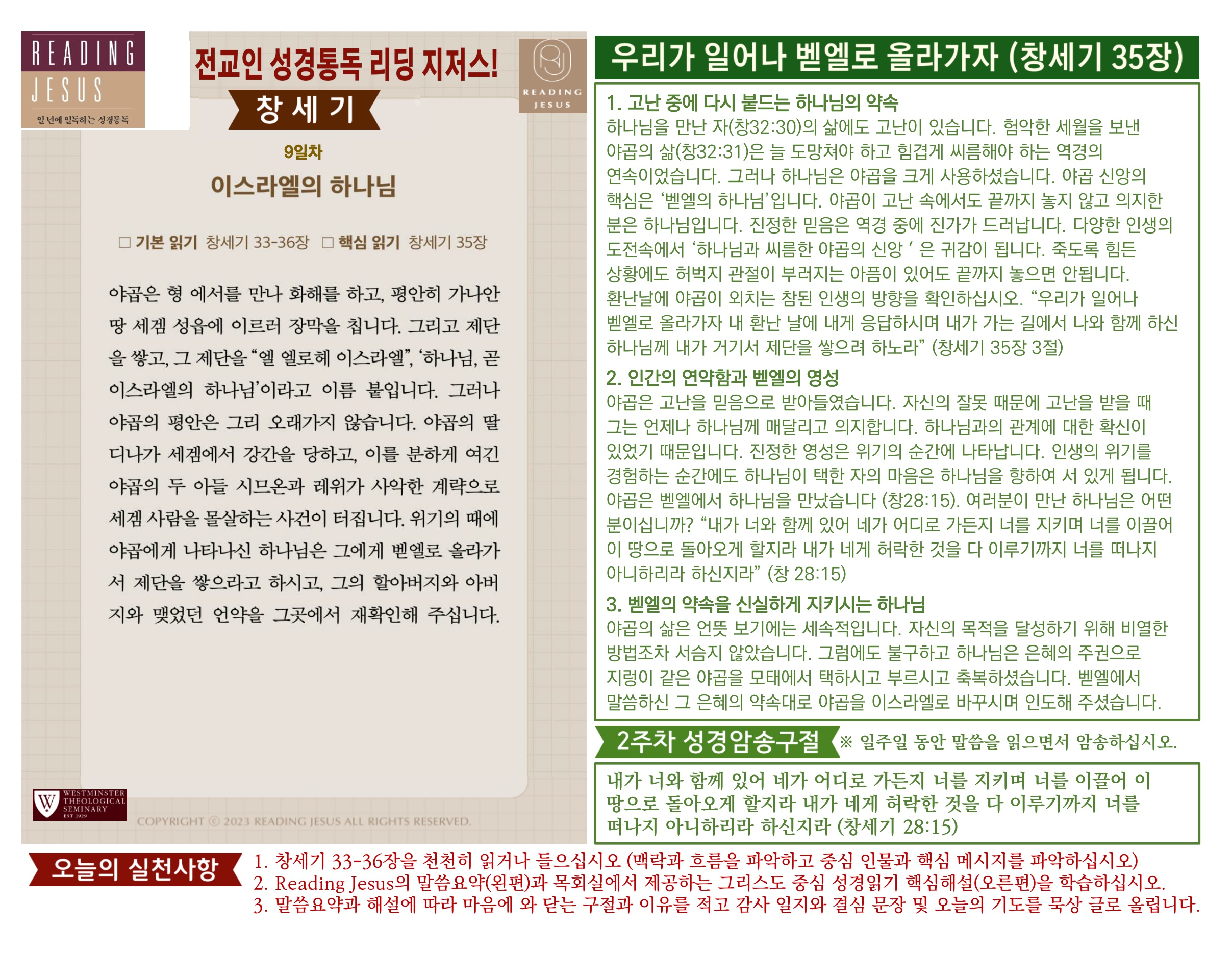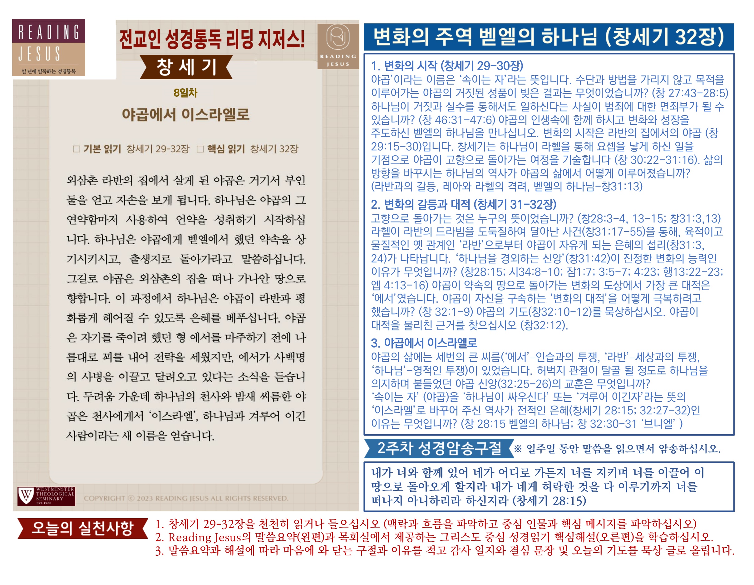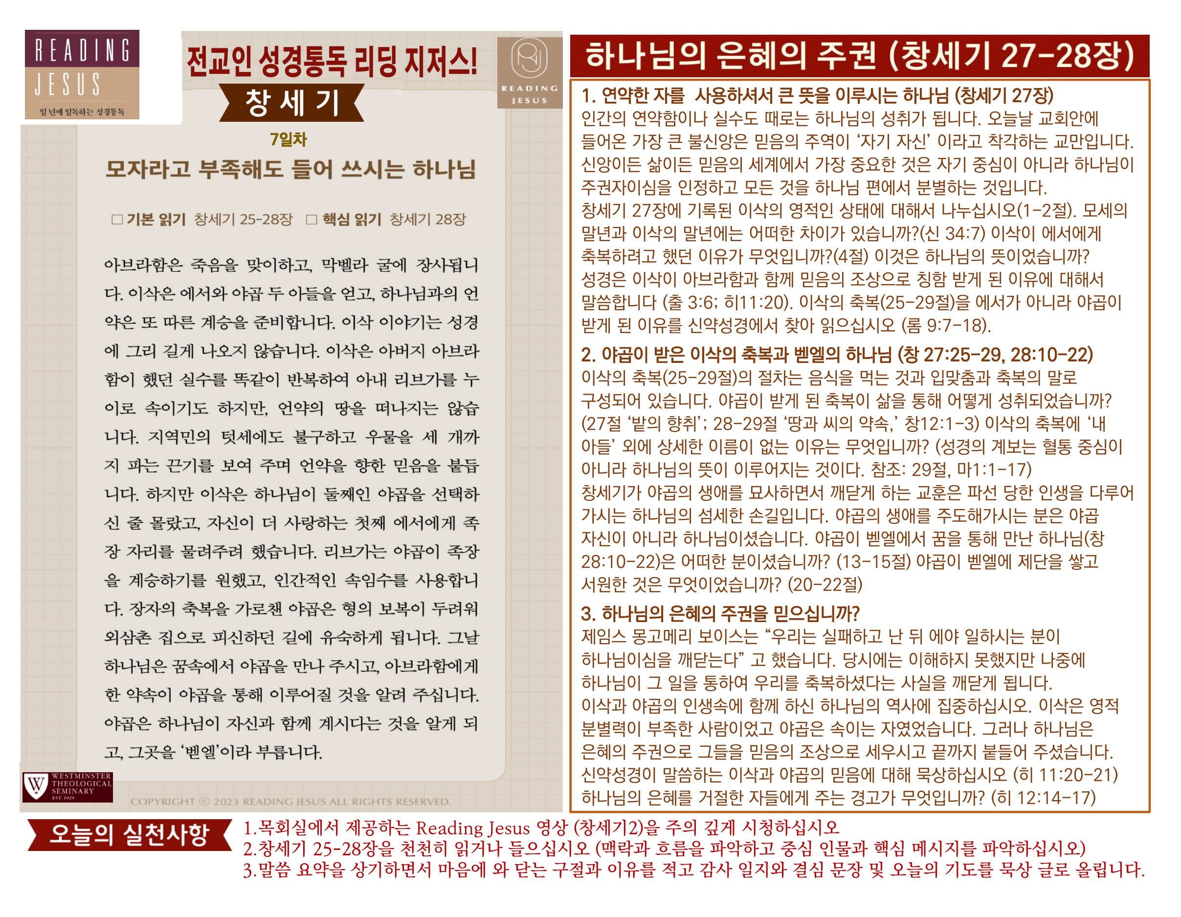 그리스도 중심 성경읽기, 리딩지저스 말씀 요약 | 2주차 : 창세기 2 관리자 교재와 해설 0 6 02.22 19:16 Author 1 1 Lv.77 관리자 최고관리자 369,330 (96.8%) 너희 안에 이 마음을 품으라 곧 그리스도 예수의 마음이니(빌립보서 2:5) Let this mind be in you, which was also in Christ Jesus(Philippians 2:5)