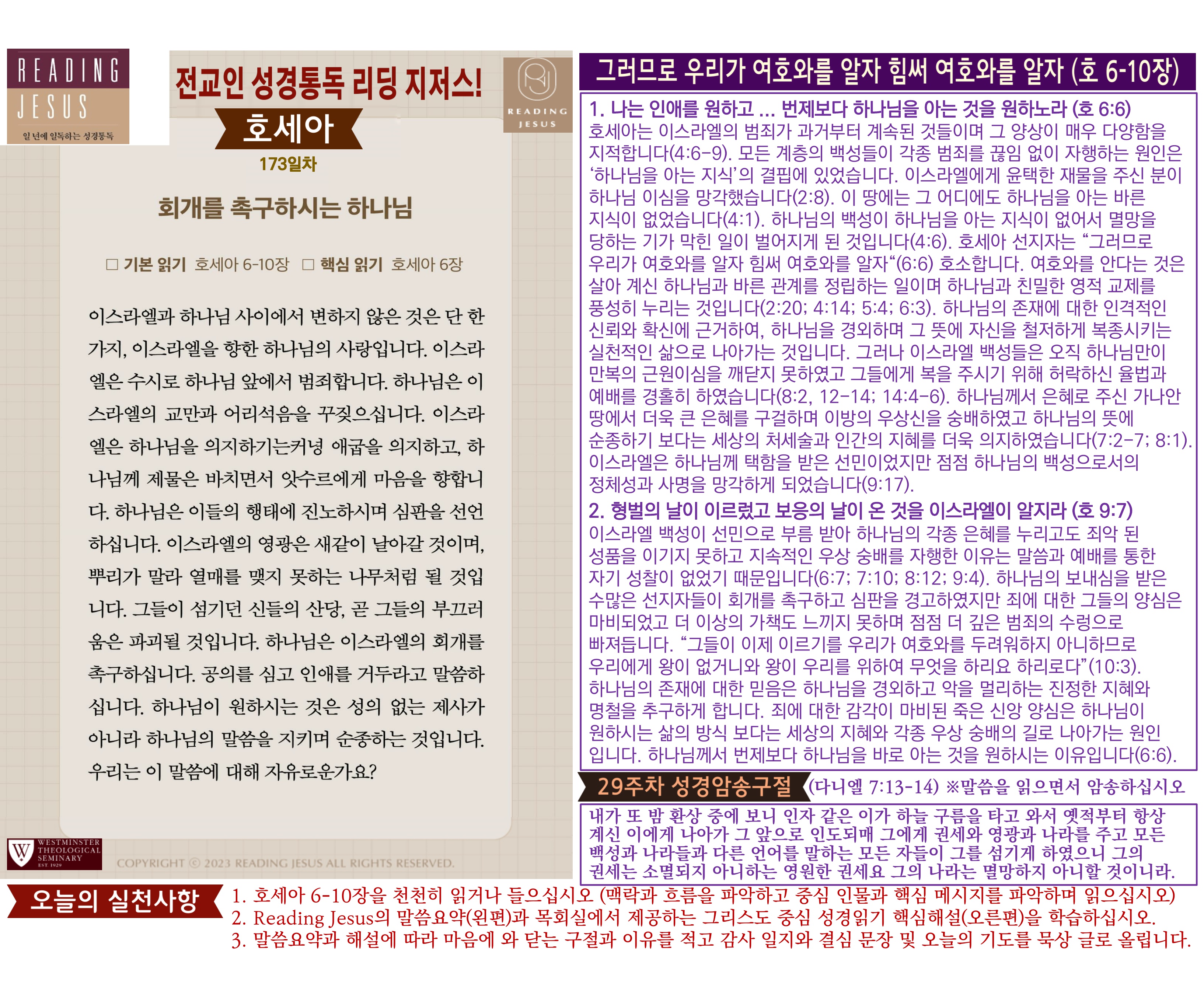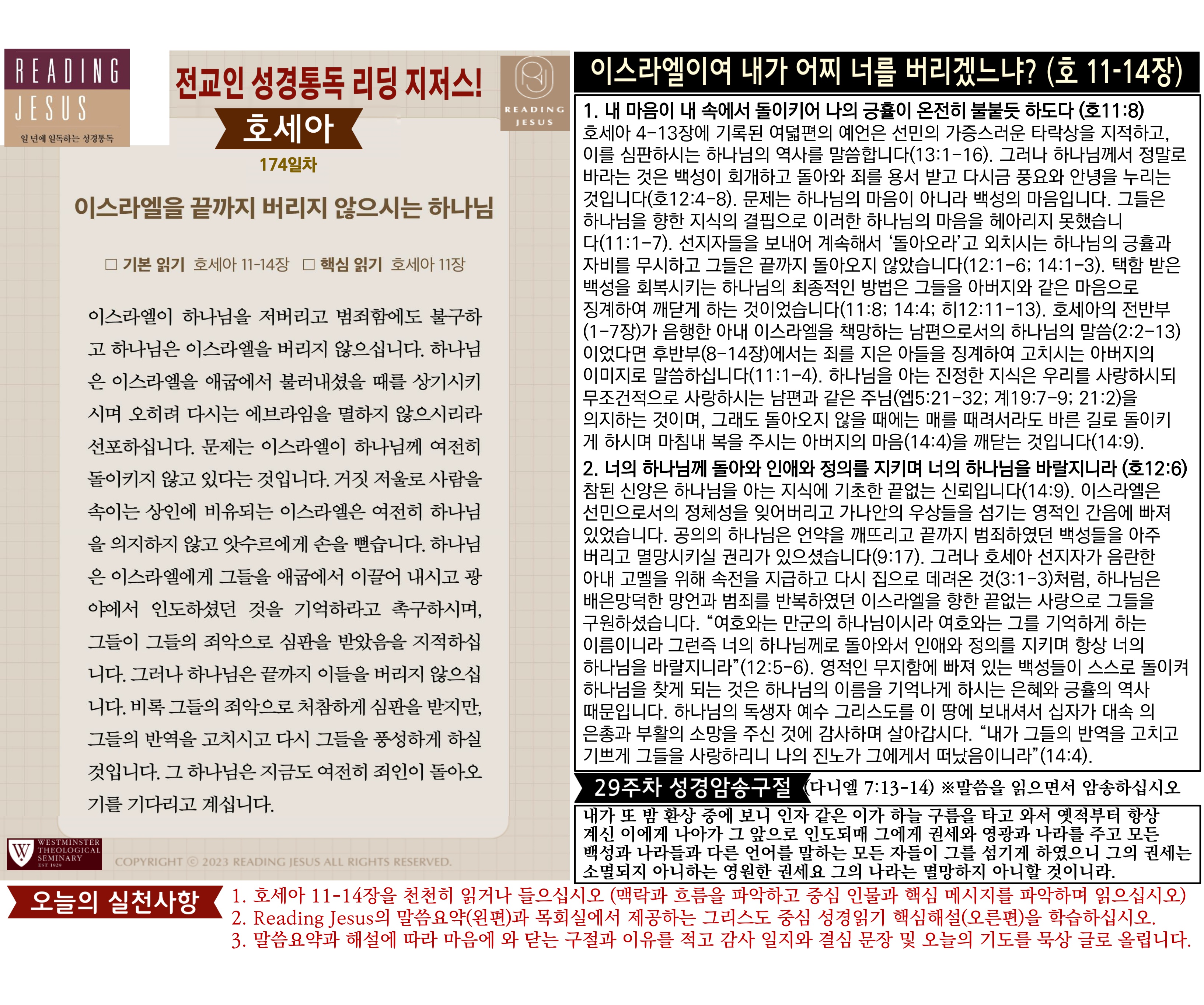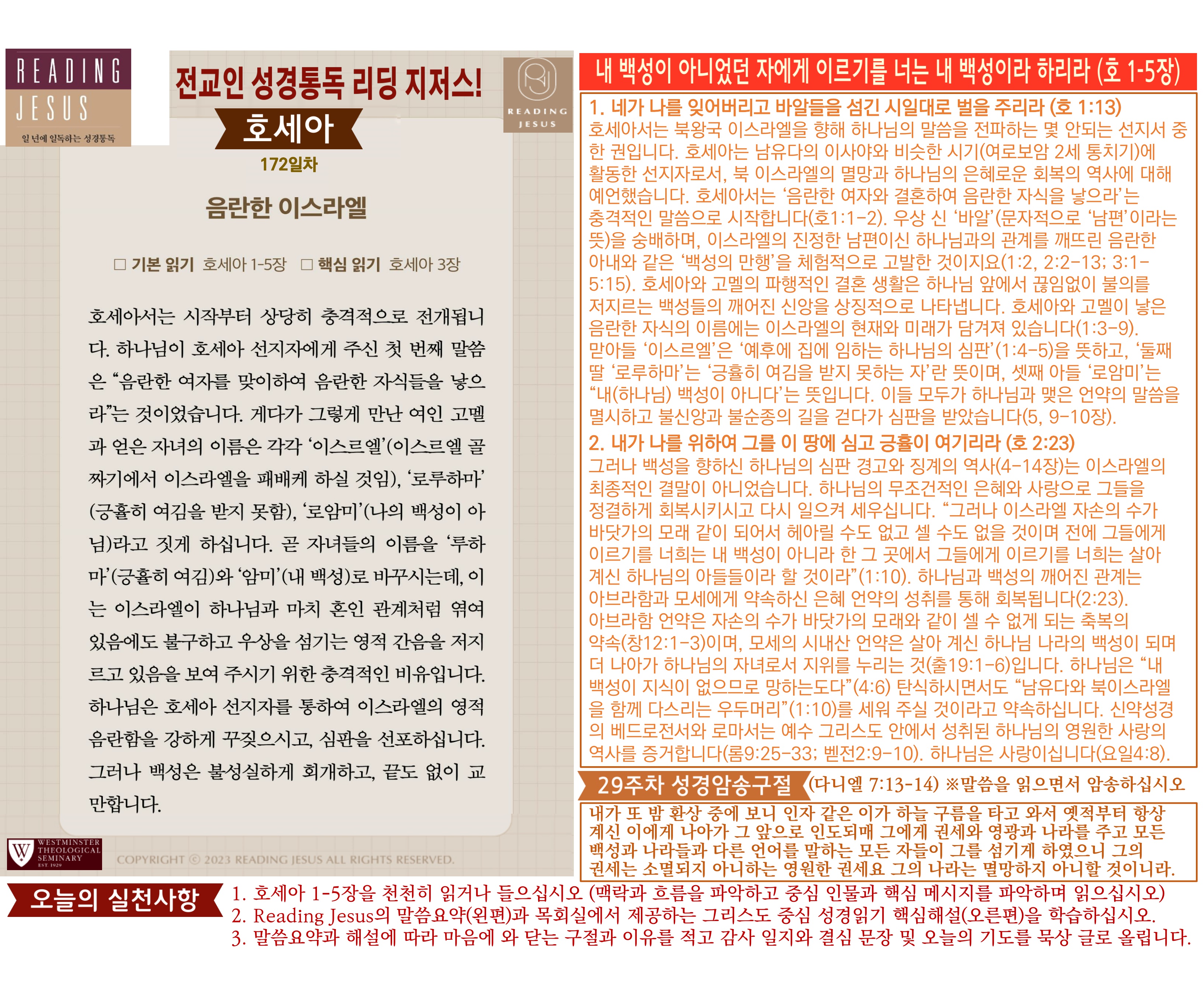 그리스도 중심 성경읽기, 리딩지저스 말씀 요약 | 29주차 : 다니엘, 호세아 관리자 교재와 해설 0 3 4시간전 Author 1 1 Lv.77 관리자 최고관리자 369,330 (96.8%) 너희 안에 이 마음을 품으라 곧 그리스도 예수의 마음이니(빌립보서 2:5) Let this mind be in you, which was also in Christ Jesus(Philippians 2:5)