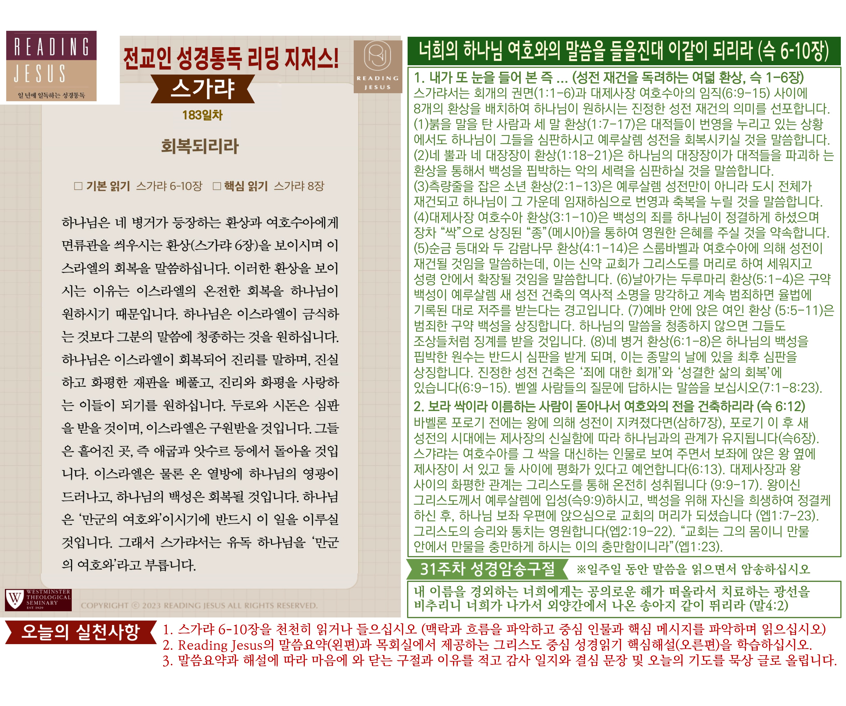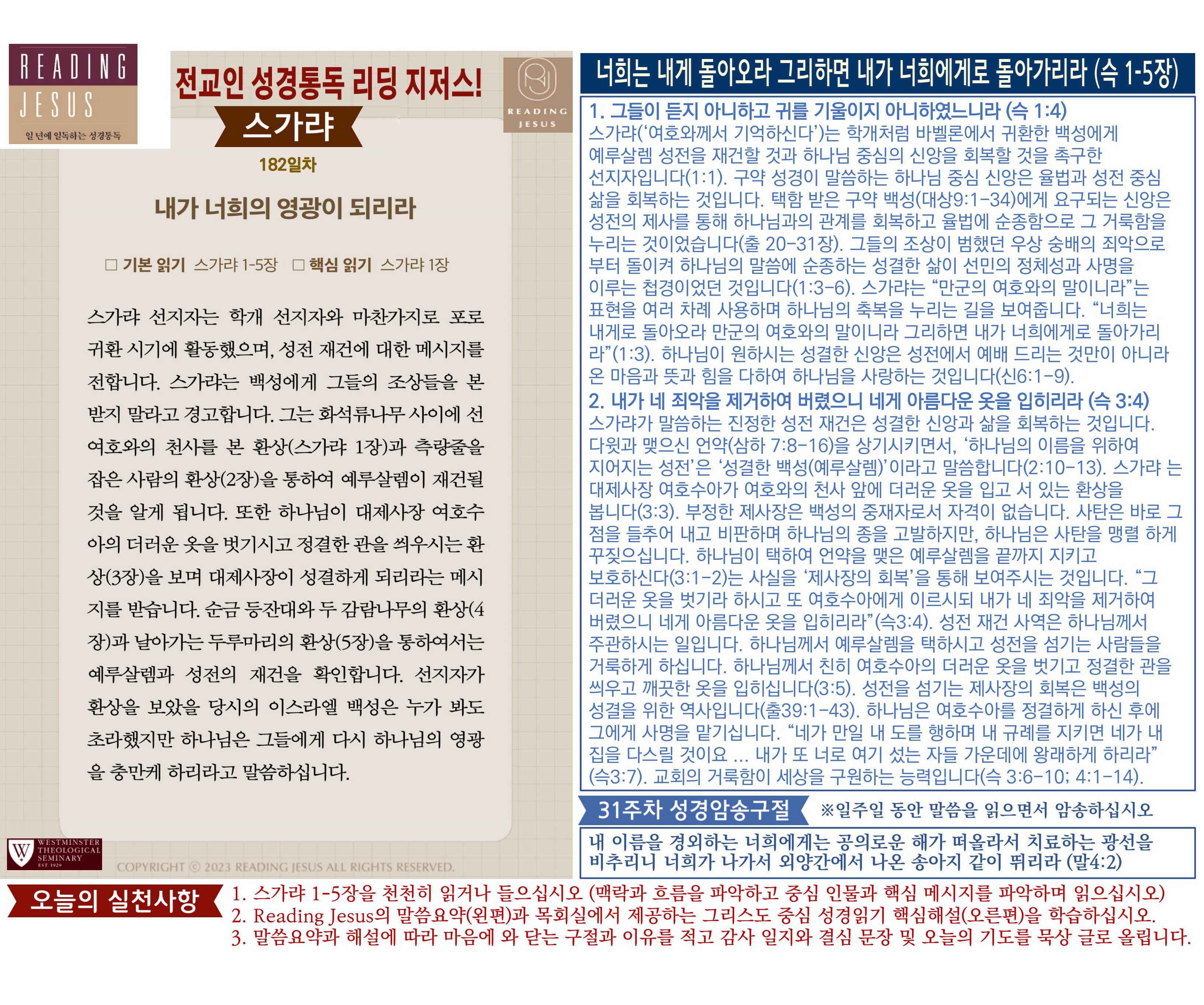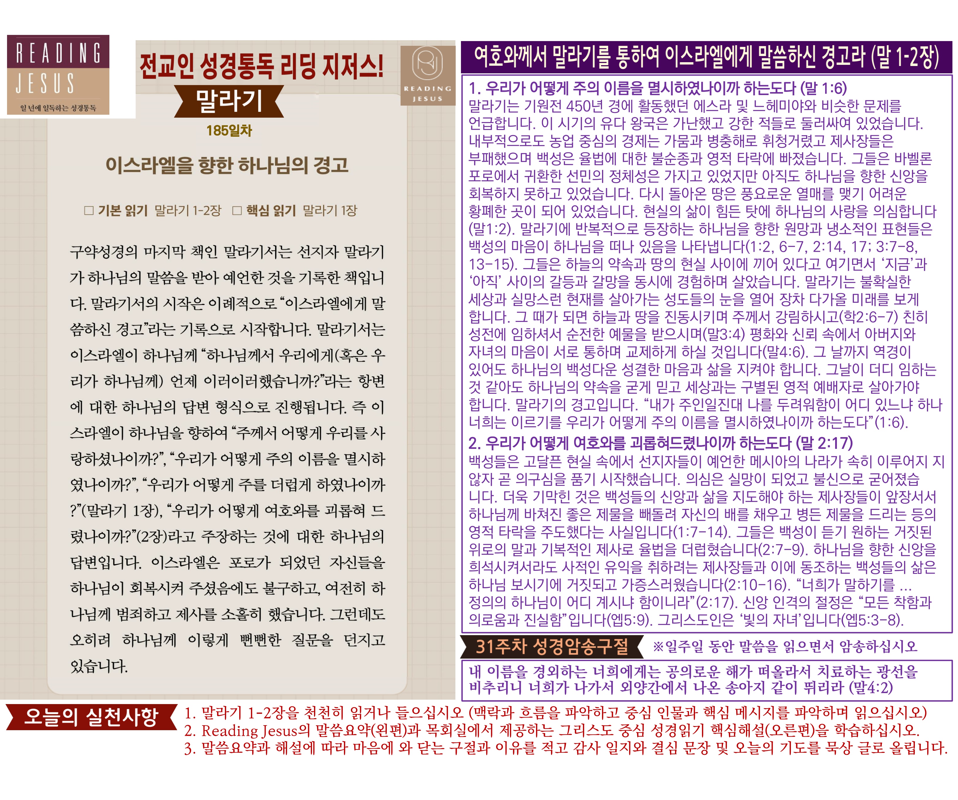 그리스도 중심 성경읽기, 리딩지저스 말씀 요약 | 31주차 : 학개 스가랴 말라기 관리자 교재와 해설 0 1 2시간전 Author 1 1 Lv.77 관리자 최고관리자 369,330 (96.8%) 너희 안에 이 마음을 품으라 곧 그리스도 예수의 마음이니(빌립보서 2:5) Let this mind be in you, which was also in Christ Jesus(Philippians 2:5)