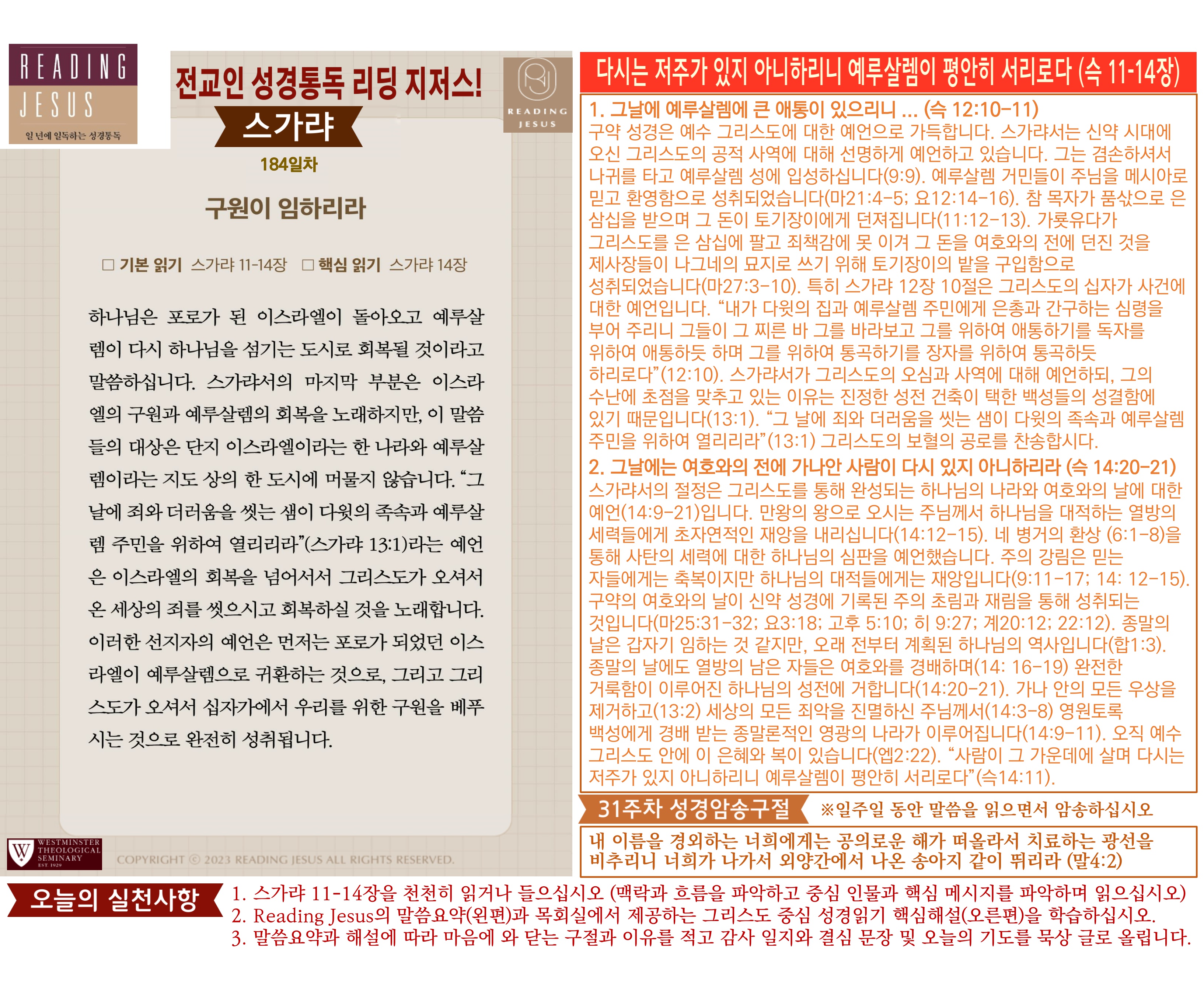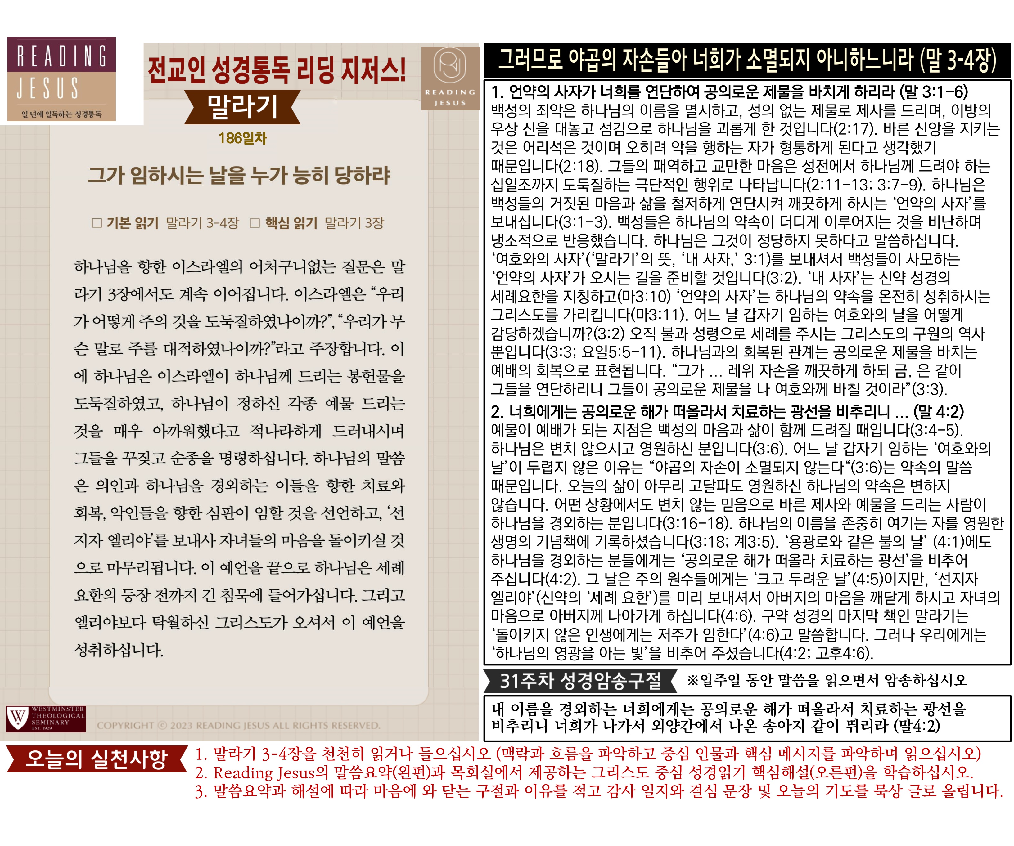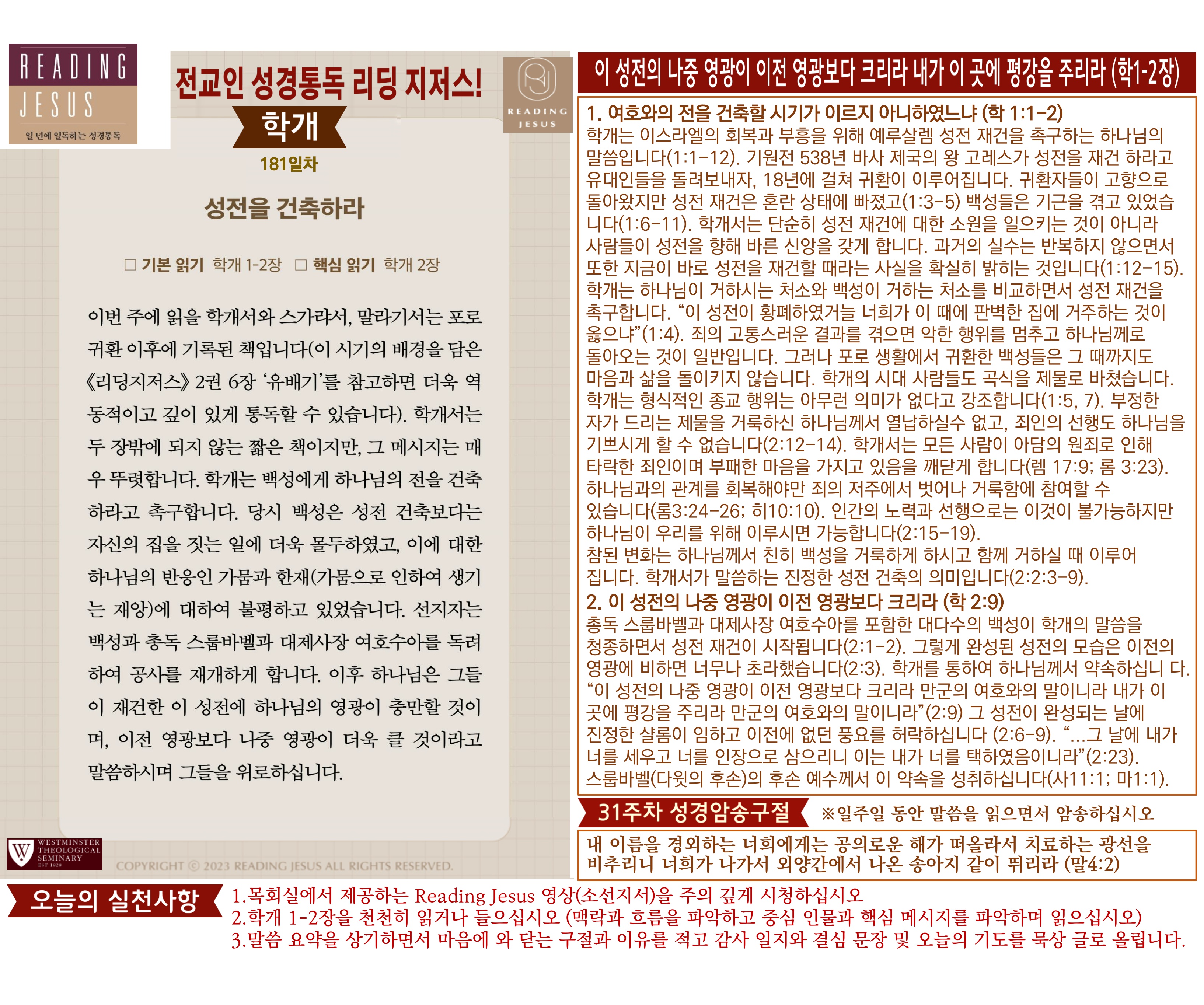 그리스도 중심 성경읽기, 리딩지저스 말씀 요약 | 31주차 : 학개 스가랴 말라기 관리자 교재와 해설 0 1 2시간전 Author 1 1 Lv.77 관리자 최고관리자 369,330 (96.8%) 너희 안에 이 마음을 품으라 곧 그리스도 예수의 마음이니(빌립보서 2:5) Let this mind be in you, which was also in Christ Jesus(Philippians 2:5)