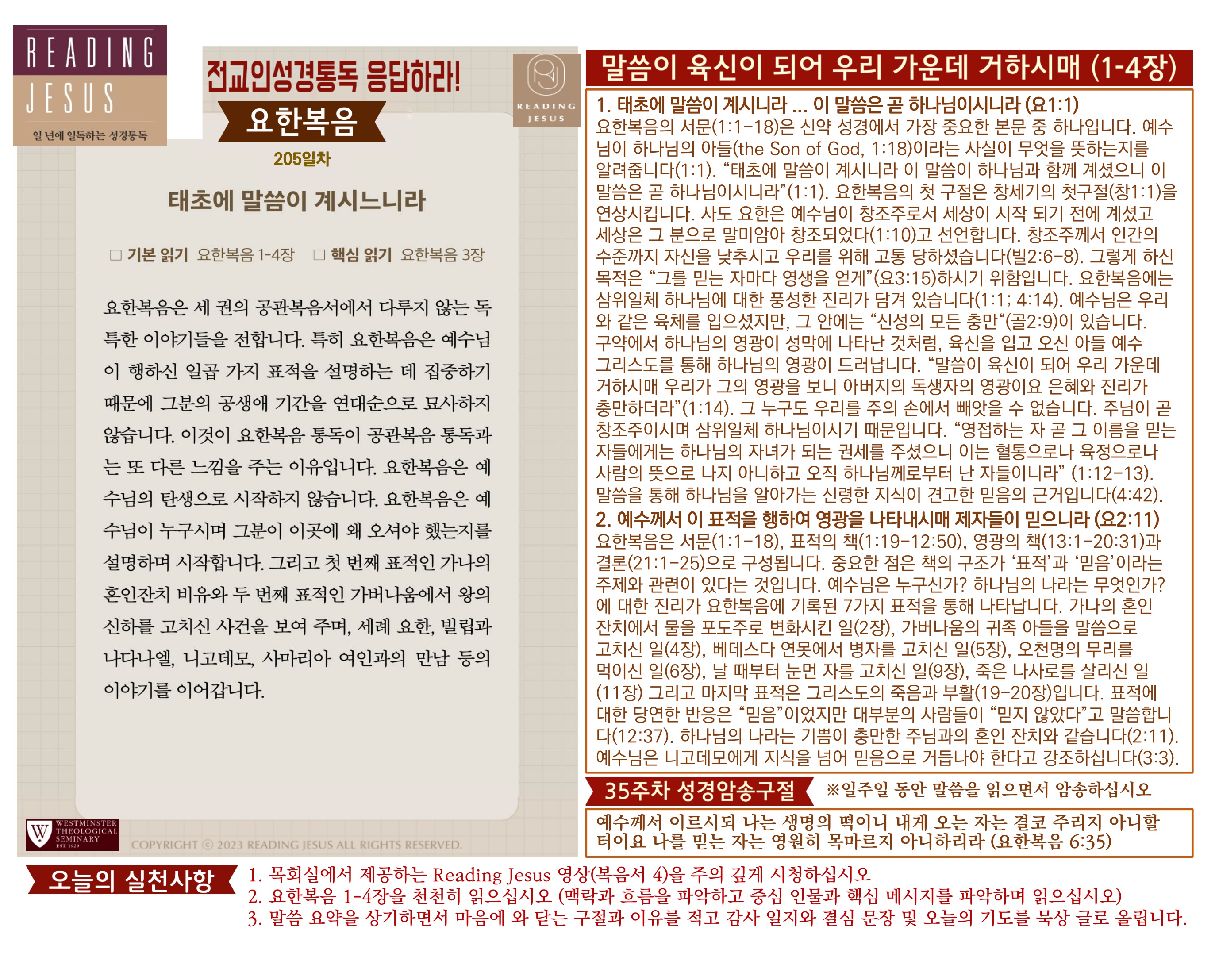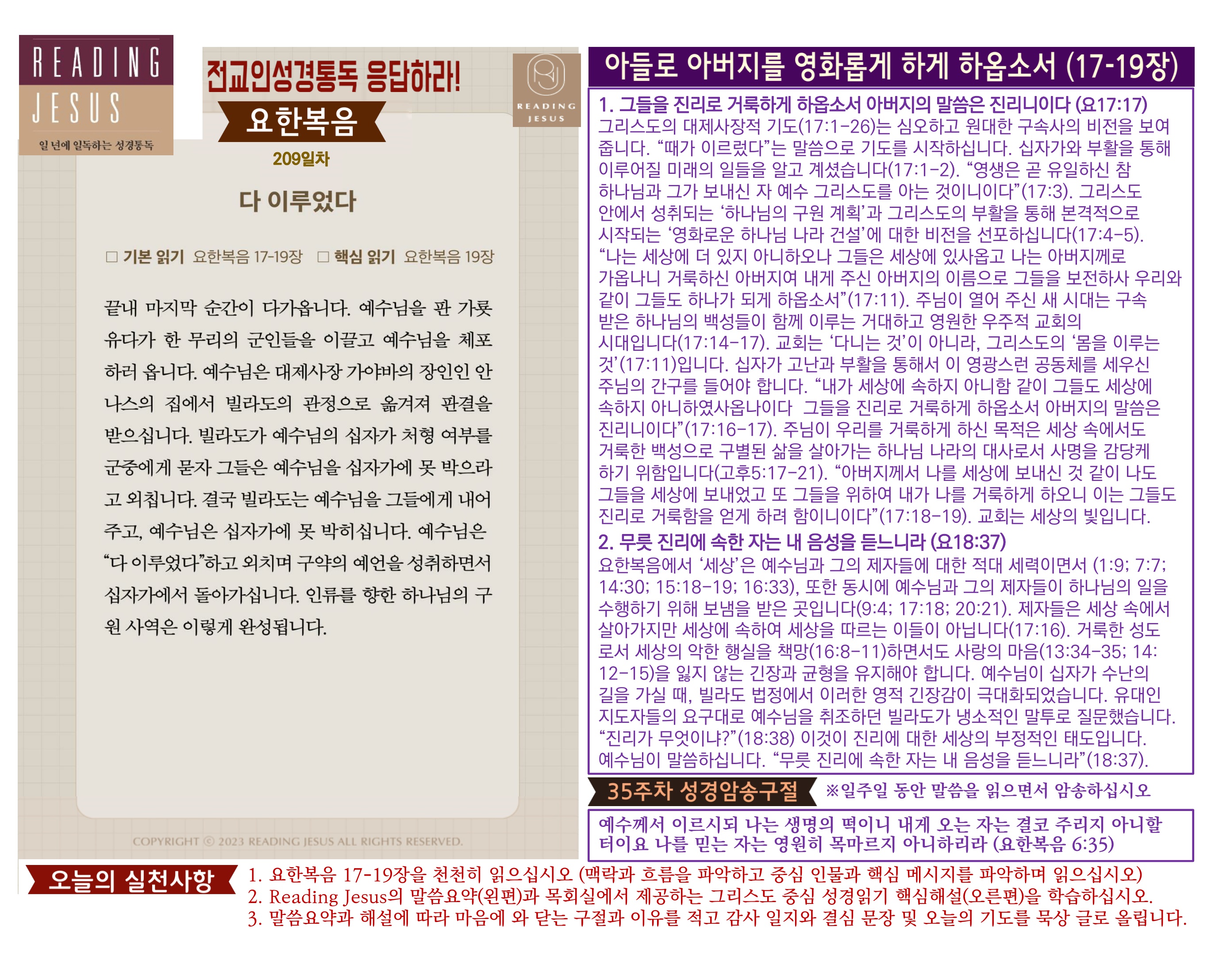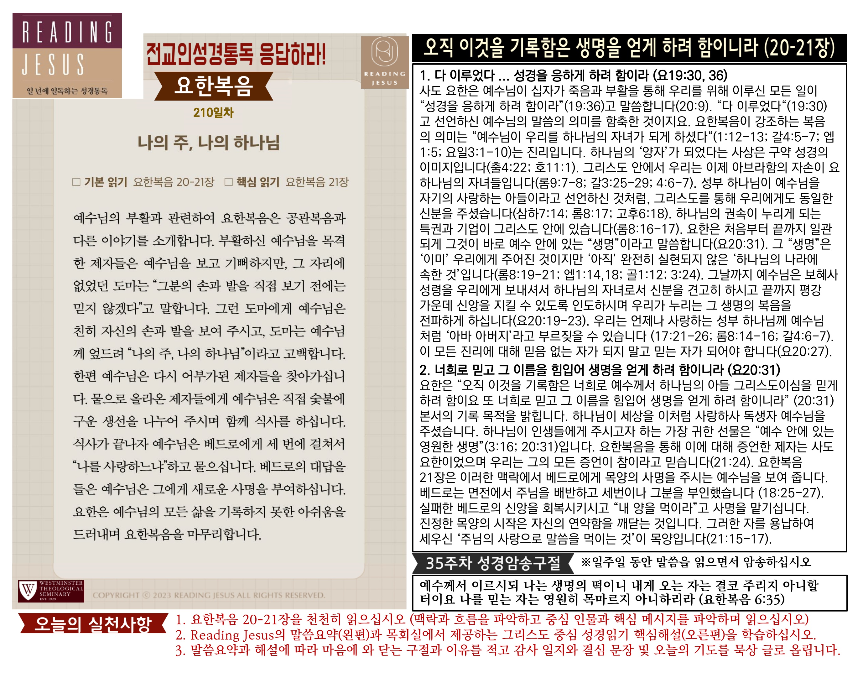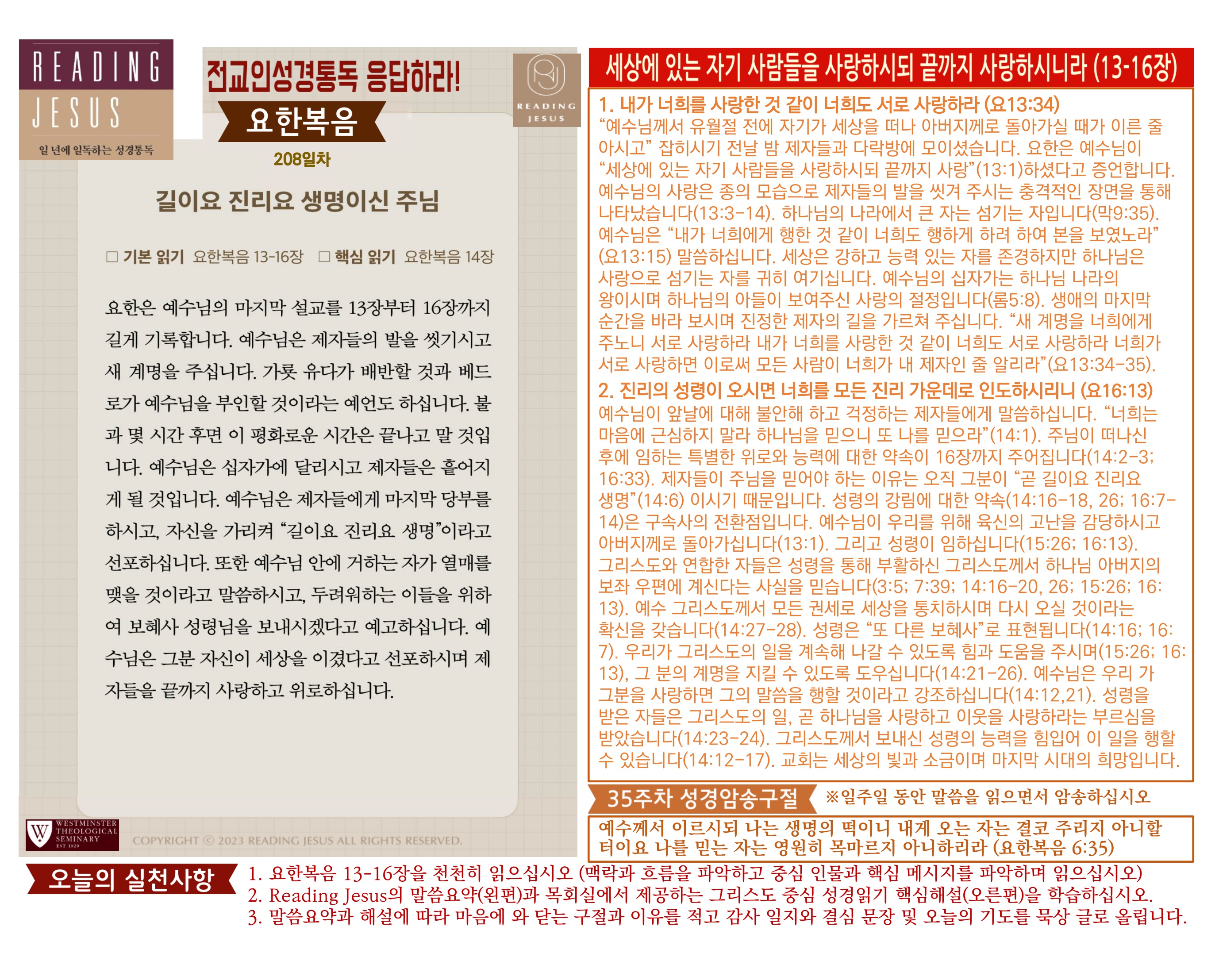 그리스도 중심 성경읽기, 리딩지저스 말씀 요약 | 35주차 : 요한복음 관리자 교재와 해설 0 158 04.07 04:15 Author 1 1 Lv.78 관리자 최고관리자 371,280 (19.3%) 너희 안에 이 마음을 품으라 곧 그리스도 예수의 마음이니(빌립보서 2:5) Let this mind be in you, which was also in Christ Jesus(Philippians 2:5)