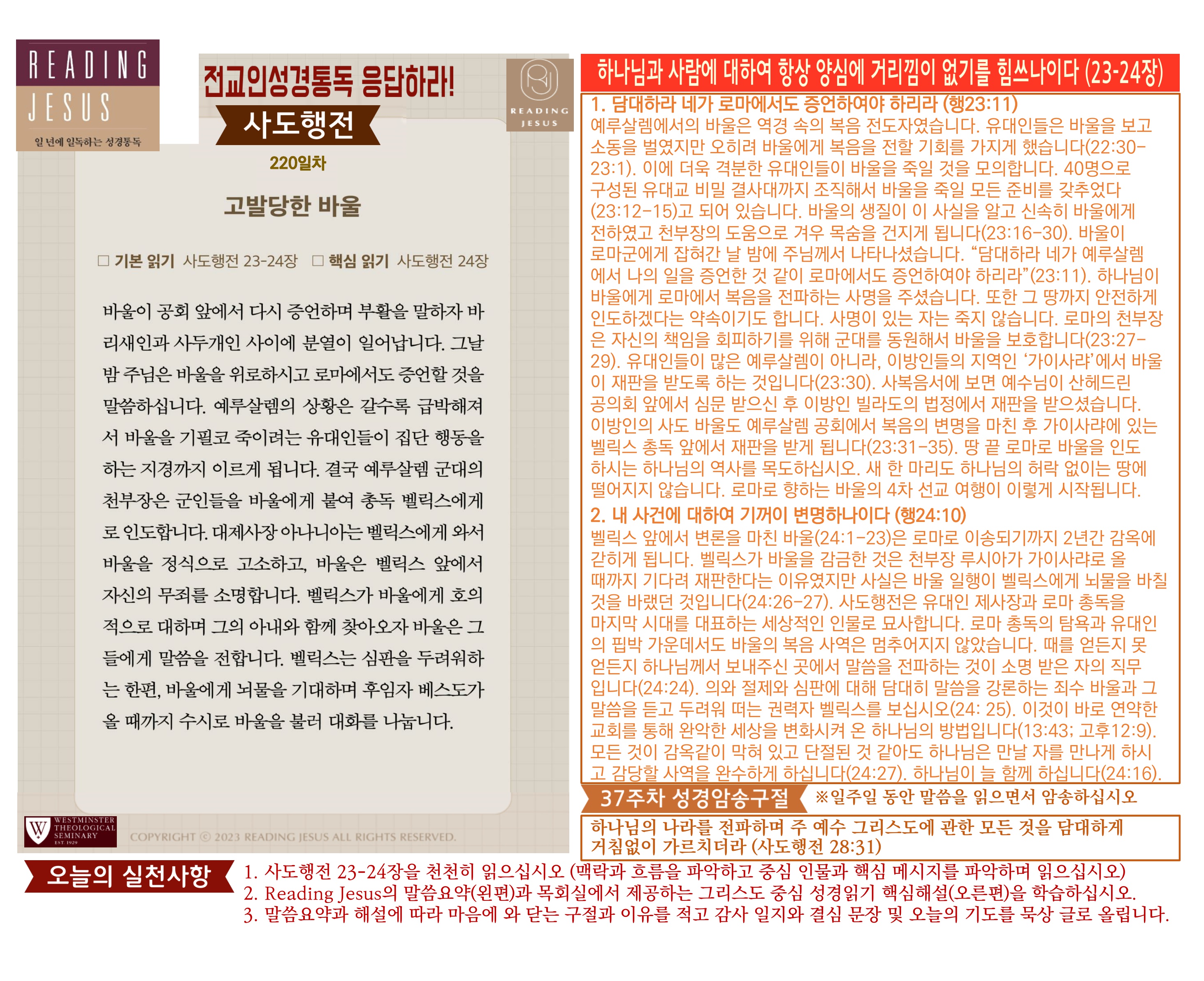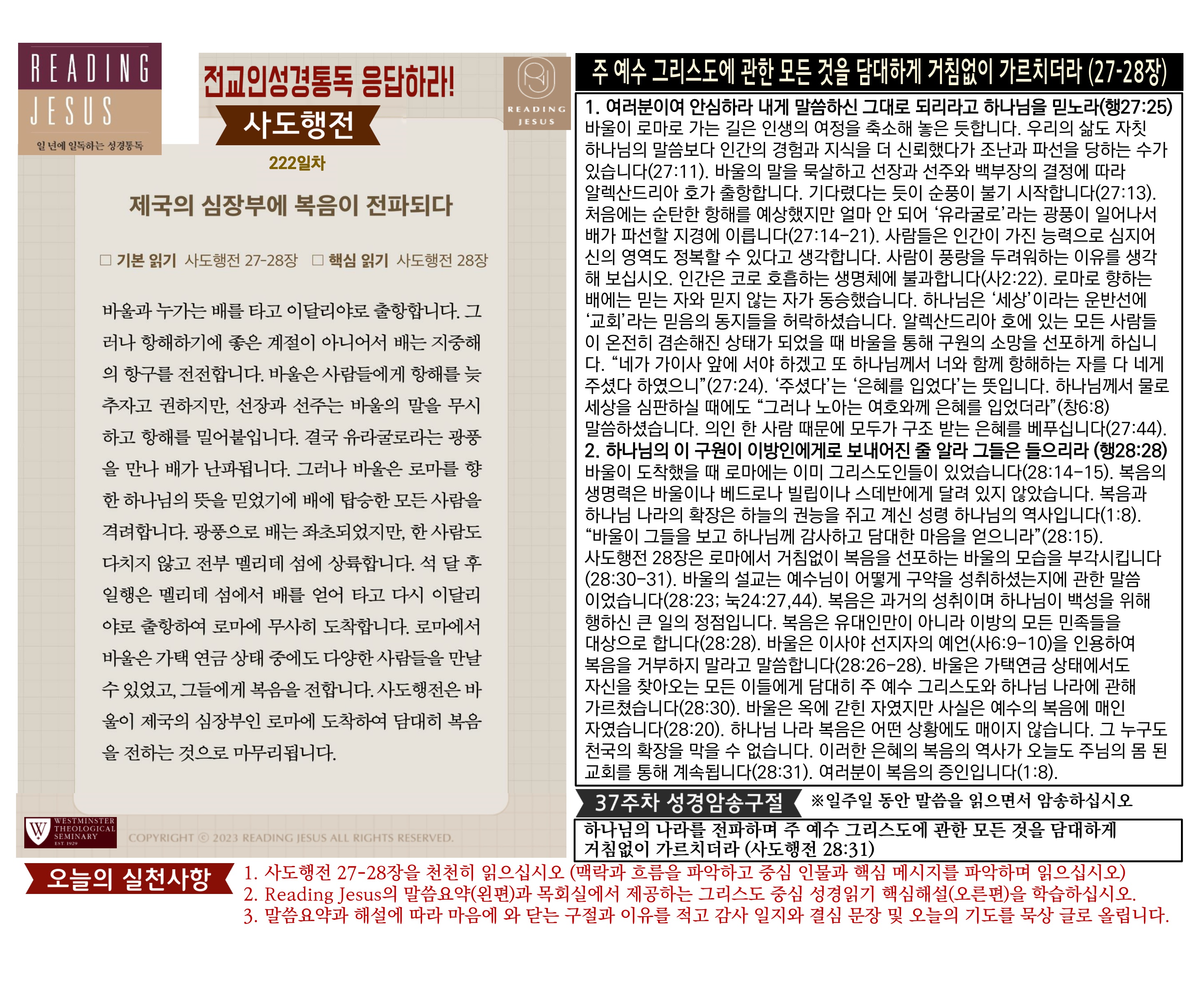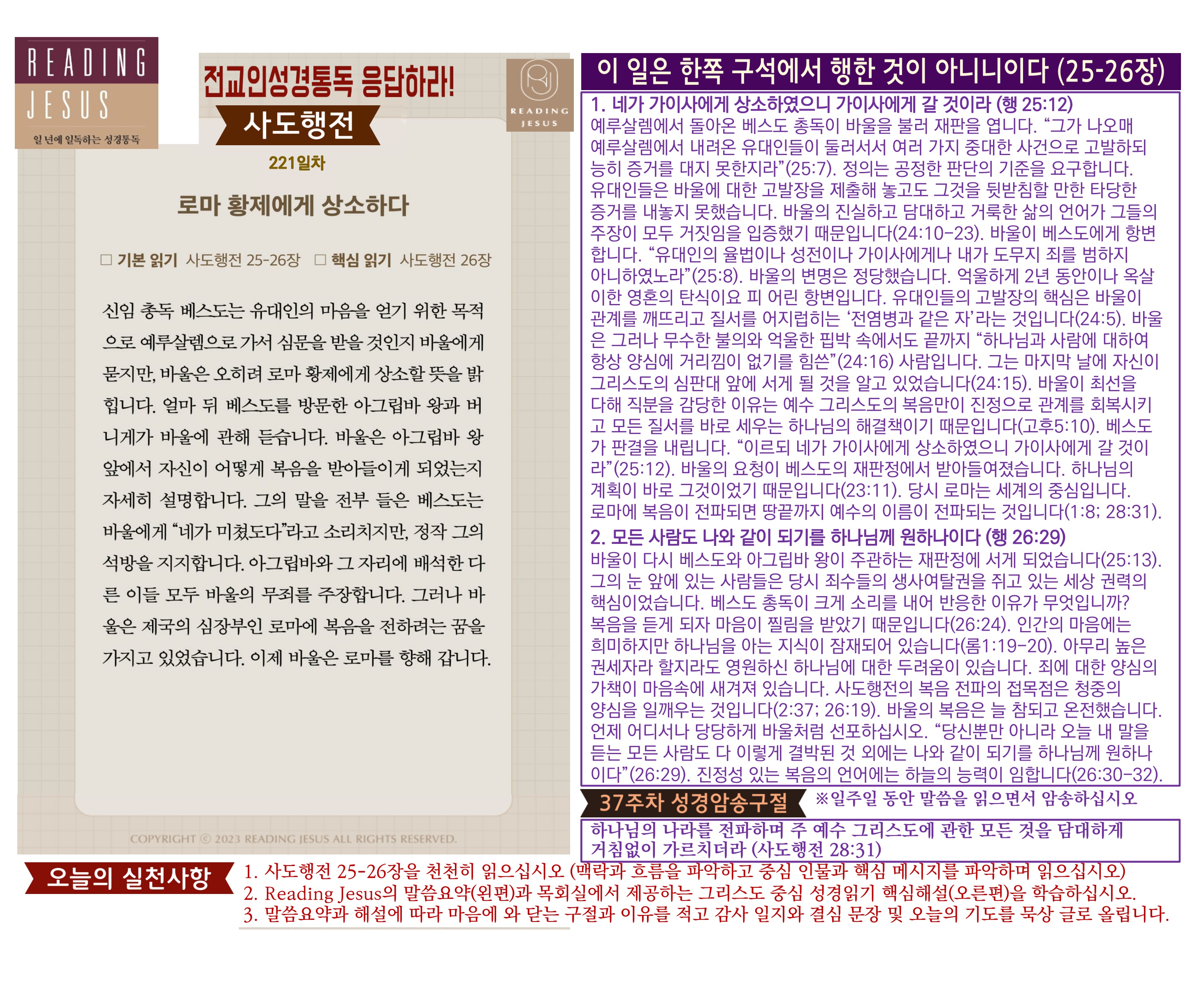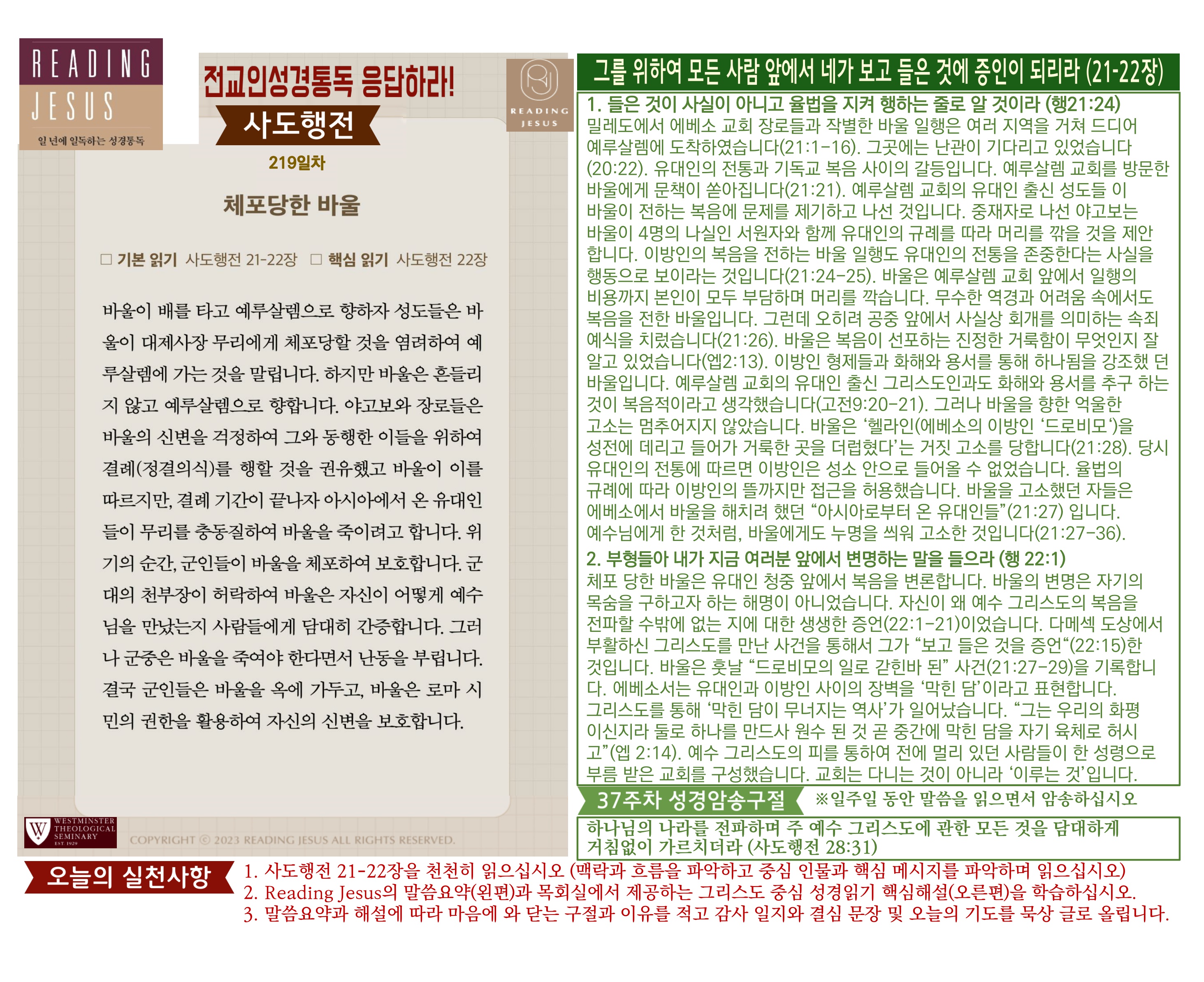 그리스도 중심 성경읽기, 리딩지저스 말씀 요약 | 37주차 : 사도행전2 관리자 교재와 해설 0 152 04.07 23:19 Author 1 1 Lv.78 관리자 최고관리자 371,280 (19.3%) 너희 안에 이 마음을 품으라 곧 그리스도 예수의 마음이니(빌립보서 2:5) Let this mind be in you, which was also in Christ Jesus(Philippians 2:5)