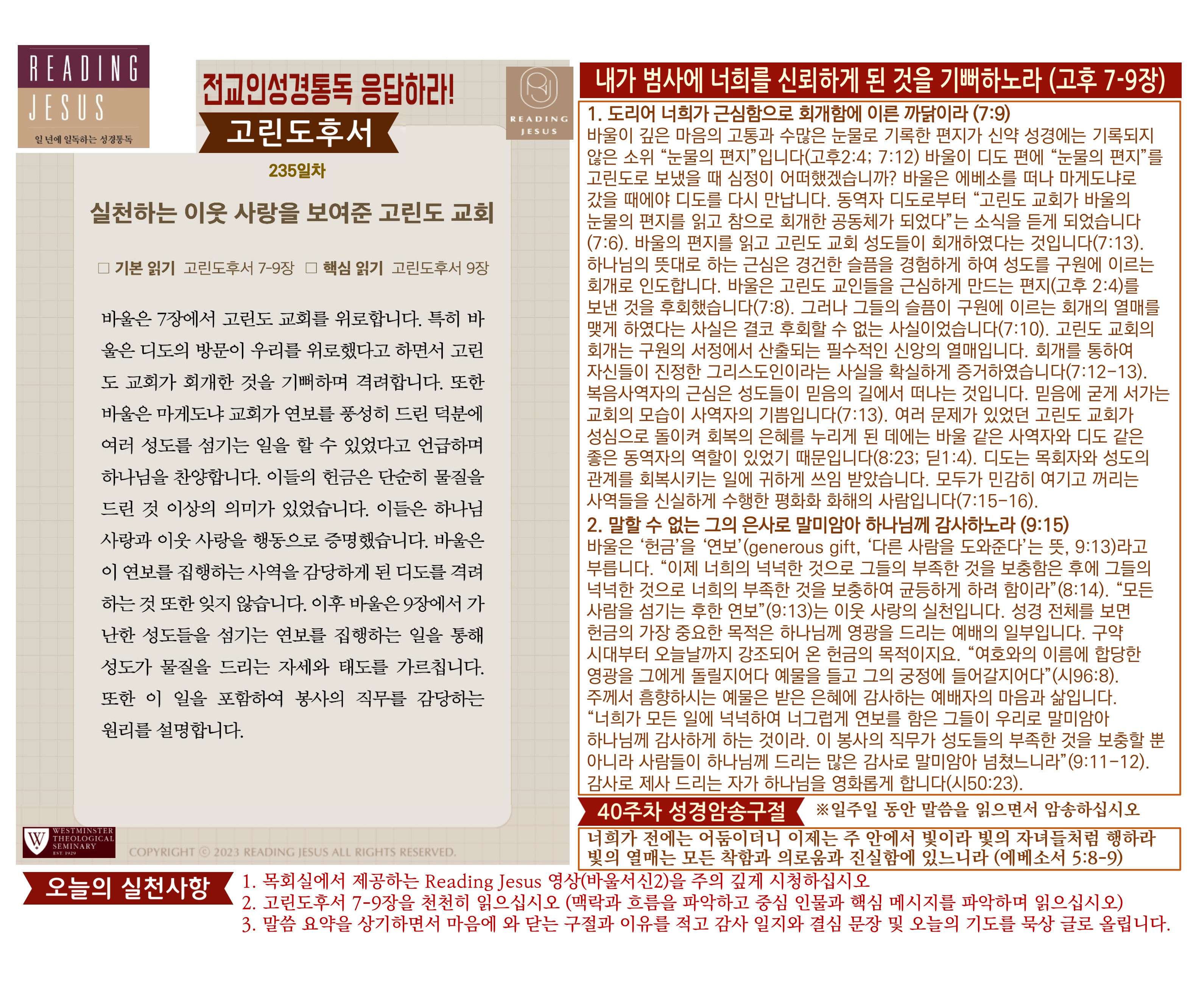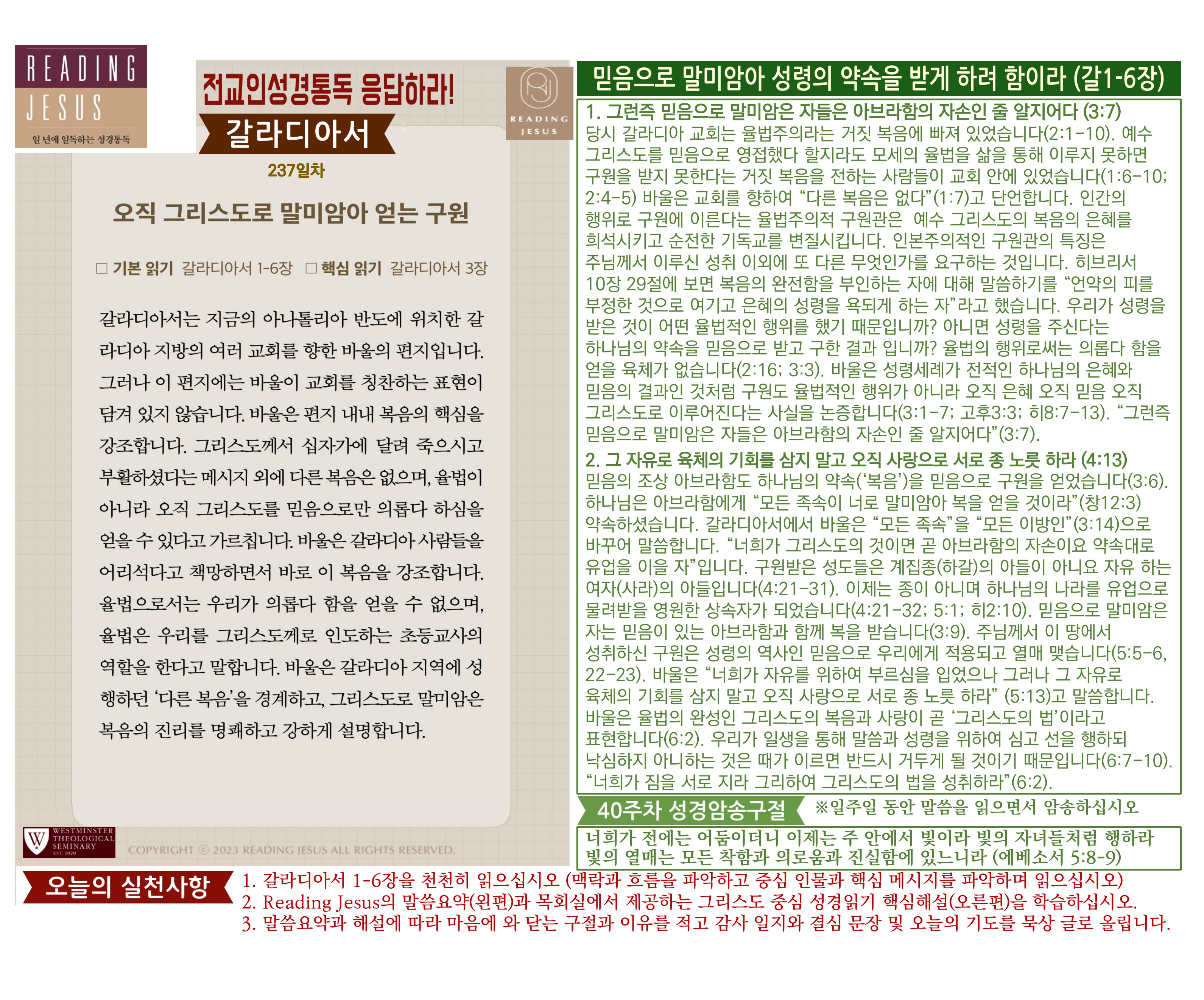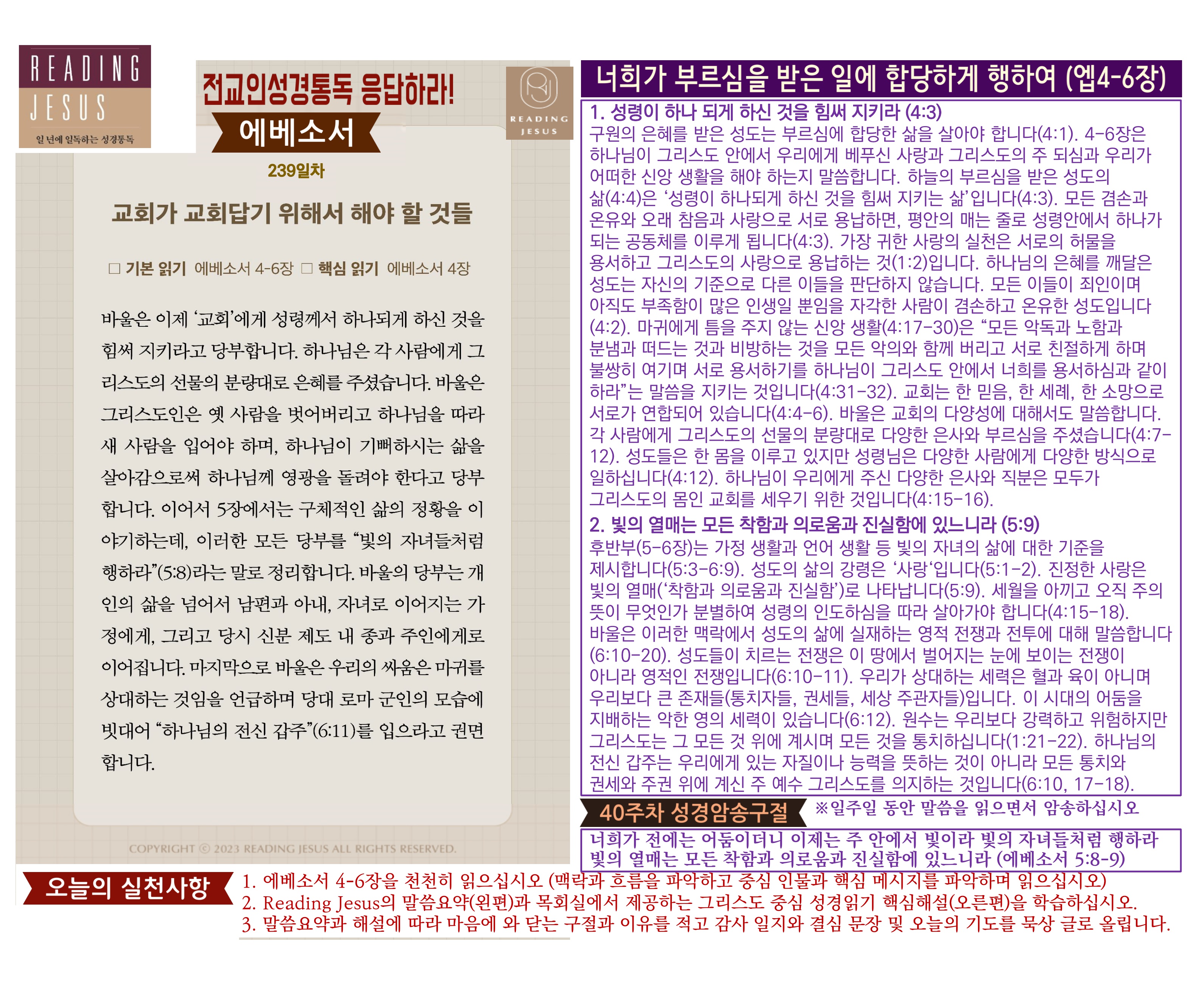 그리스도 중심 성경읽기, 리딩지저스 말씀 요약 | 40주차 : 고린도후서 갈라디아서 에베소서 빌립보서 관리자 교재와 해설 0 124 04.09 18:37 그리스도 중심 성경읽기, 리딩지저스 말씀 요약 | 40주차 : 고린도후서 갈라디아서 에베소서 빌립보서 Author 1 1 Lv.78 관리자 최고관리자 371,280 (19.3%) 너희 안에 이 마음을 품으라 곧 그리스도 예수의 마음이니(빌립보서 2:5) Let this mind be in you, which was also in Christ Jesus(Philippians 2:5)